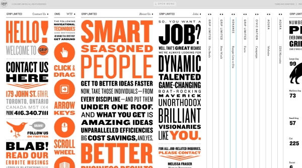 フラッシュでテキストをシンプルに見せています。こういうシンプルなサイトは好きですが、テキストがコピーできないのは辛い。