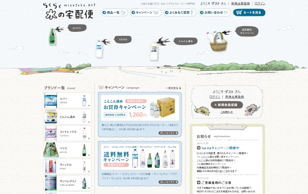 ミネラルウォーターの自然派な感じが、テクスチャとかイラストでイイ感じに表現されててナイス。(width)